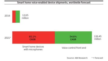 While Siri and Google Now are well-established smartphone features, it is predicted the full potential of voice control systems in the smart home will be met in the coming years. ABI Research forecasts that more than 120 million voice-enabled devices will ship annually by 2021.